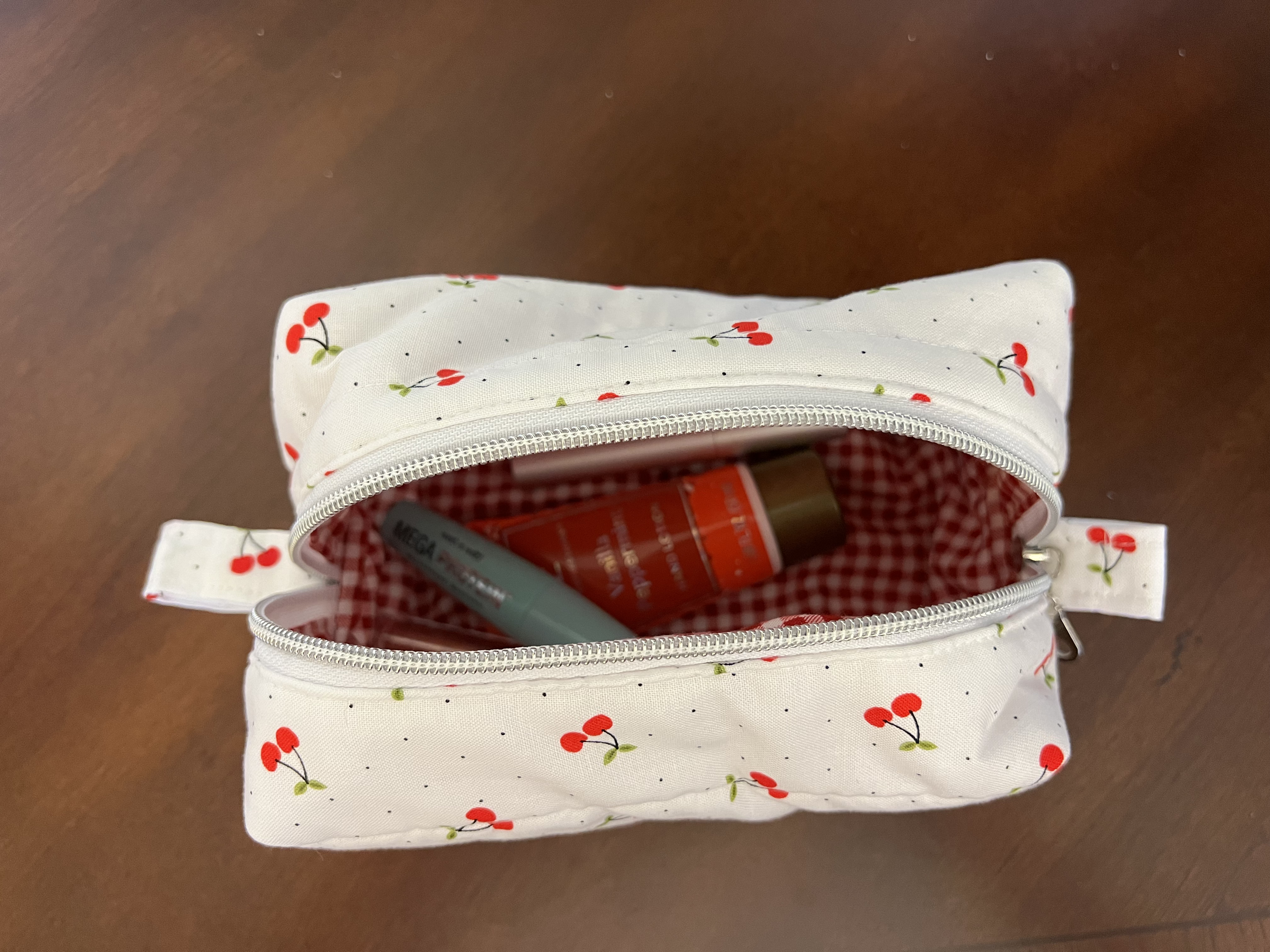 Cute, trendy, aesthetic quilted cosmetic bags made by Chary’s Creations are 100% cotton, inside and out, with a durable zipper and pull tab.