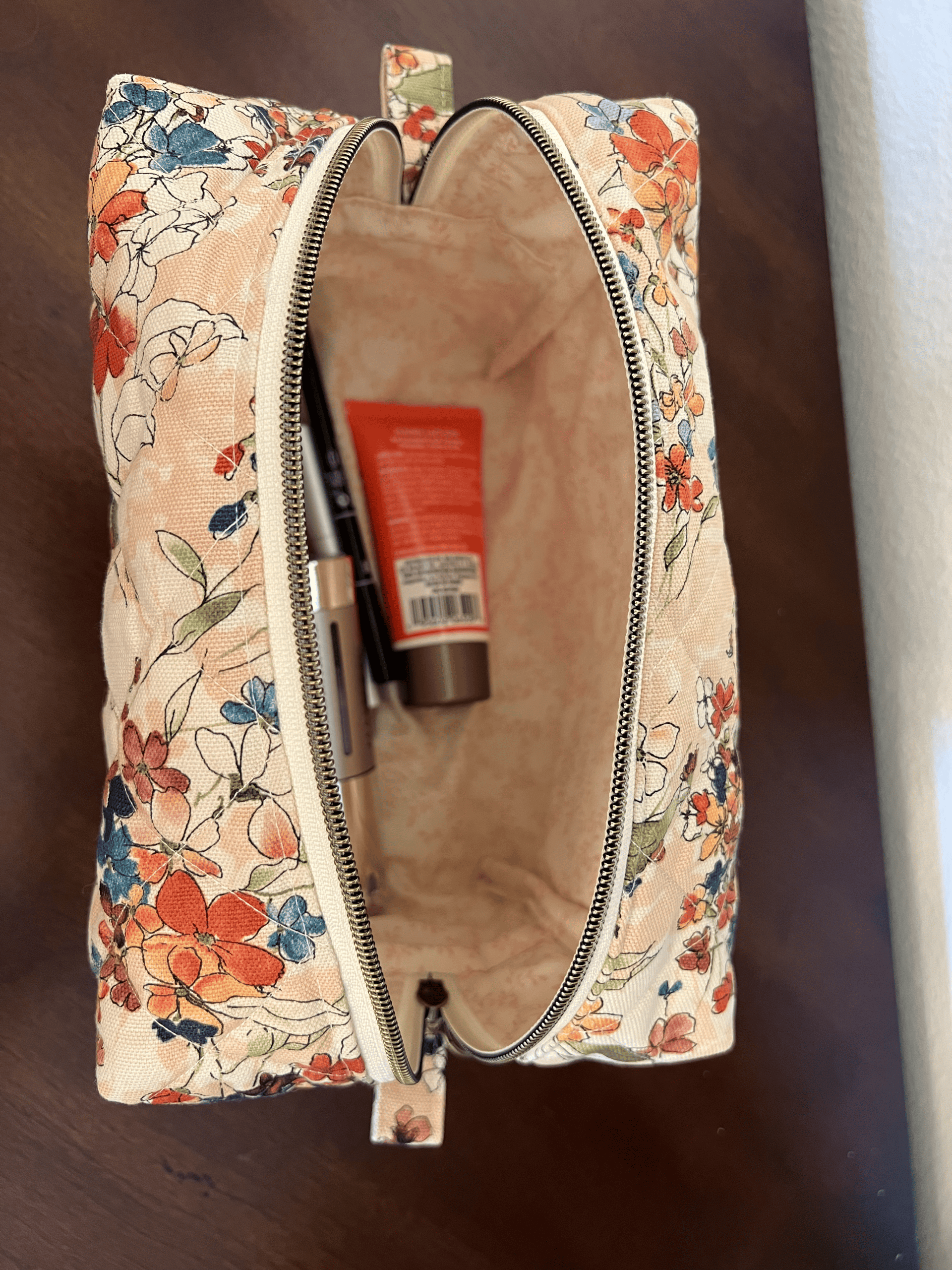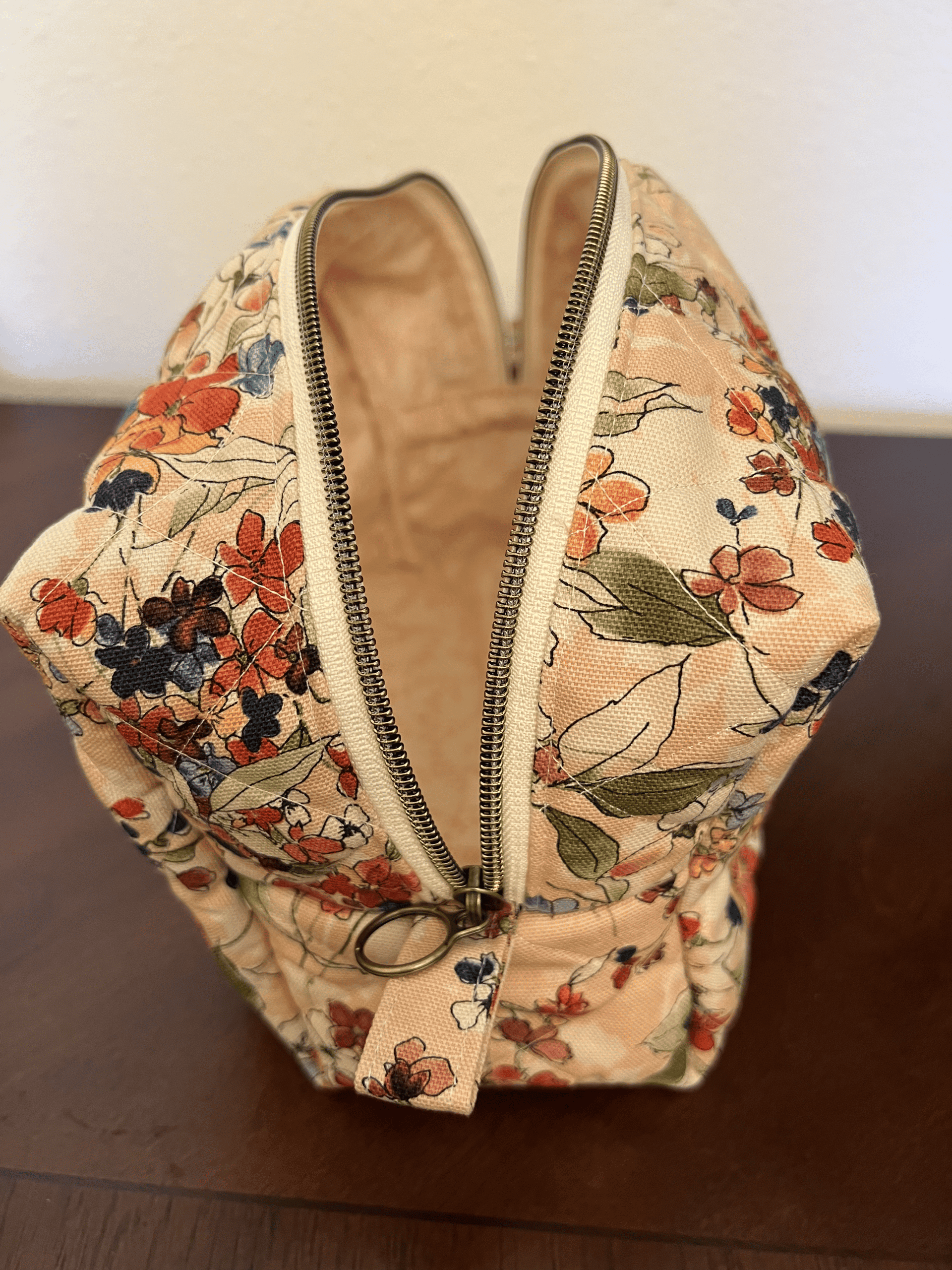 Cute, trendy, aesthetic quilted cosmetic bags made by Chary’s Creations are 100% cotton, inside and out, with a durable zipper and pull tab.