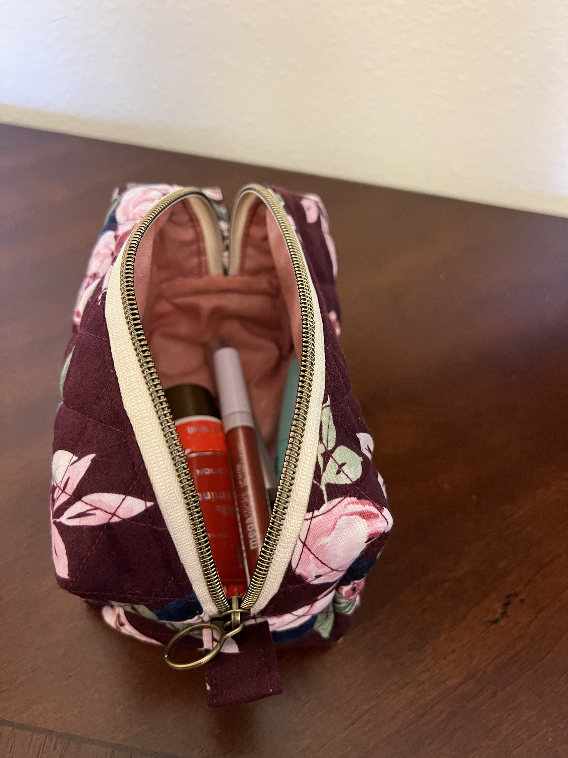 Cute, trendy, aesthetic quilted cosmetic bags made by Chary’s Creations are 100% cotton, inside and out, with a durable zipper and pull tab.