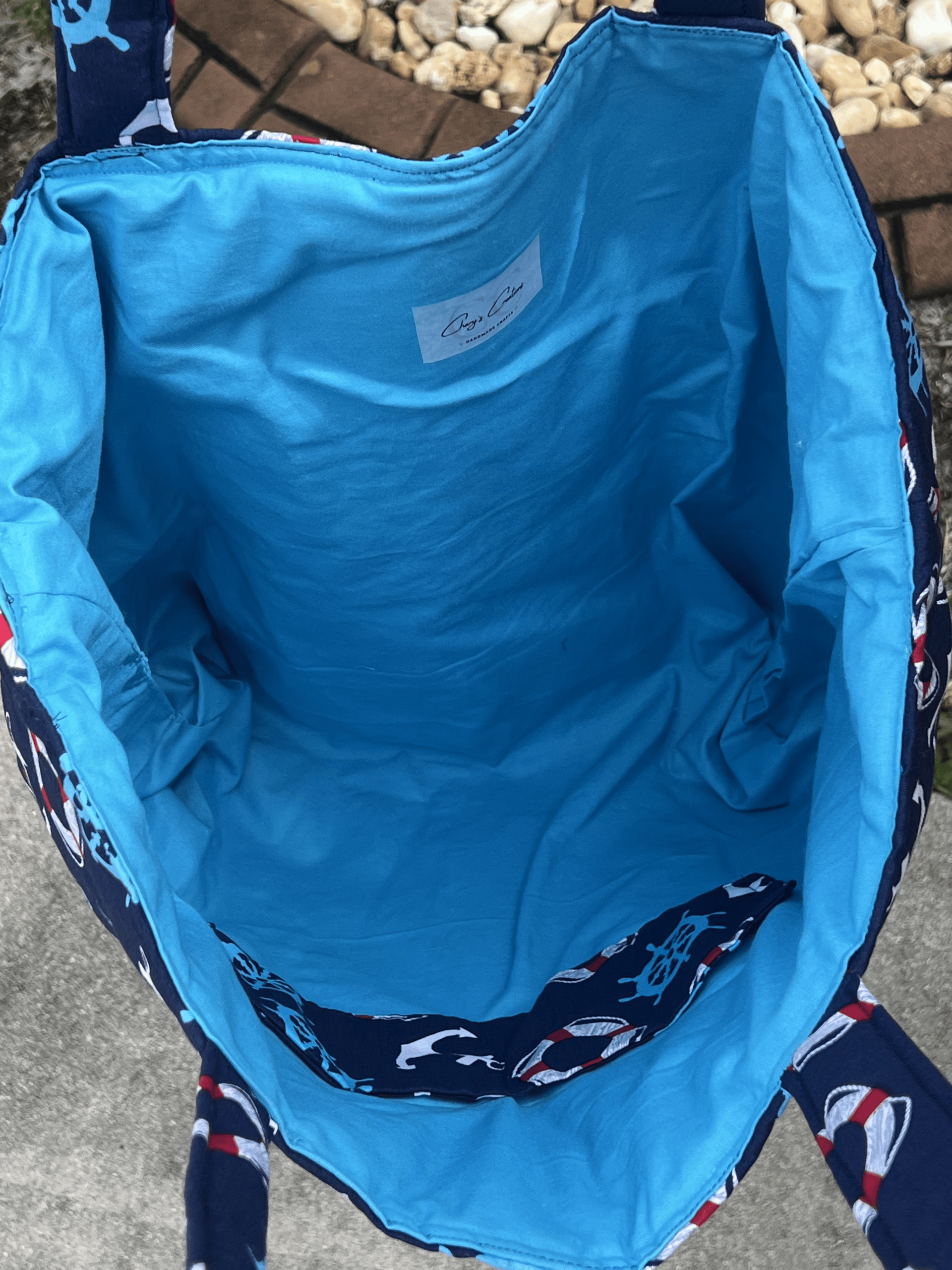 Carry a little piece of charm and craftsmanship wherever you go! This handsewn tote bag is made with love and care, bringing a touch of sea side style that’s perfect for your next beach or pool trip. Sturdy yet lightweight, it’s perfect for daily errands, library trips, farmer’s market hauls, or as your go-to mom bag.