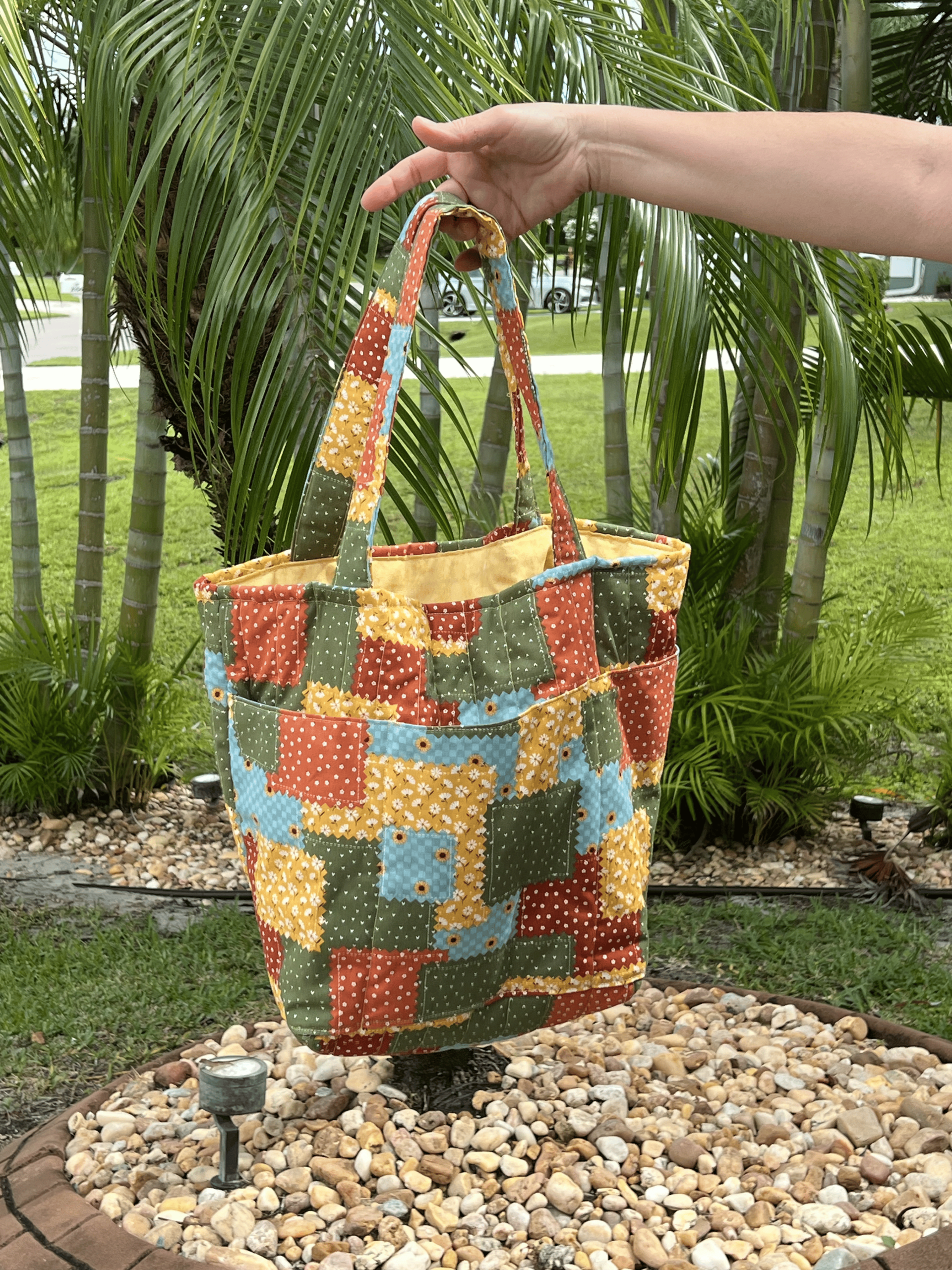 Carry a little piece of charm and craftsmanship wherever you go! This handsewn tote bag is made with love and care, featuring a cheerful patchwork design that blends vibrant colors and patterns for a timeless, cozy look. Sturdy yet lightweight, it’s perfect for daily errands, library trips, farmer’s market hauls, or as your go-to mom bag.